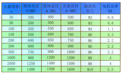 反應鍋主要技術(shù)參數